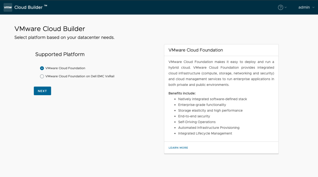 Some steps take longer than the other for example the bring up of NSX-T and vCenter, but as soon as everything is completed the below screen will be displayed.